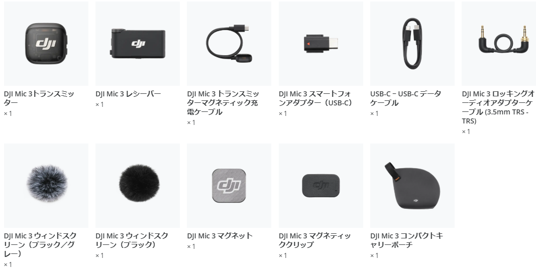 DJI Mic 3(1 TX + 1 RX) 同梱物