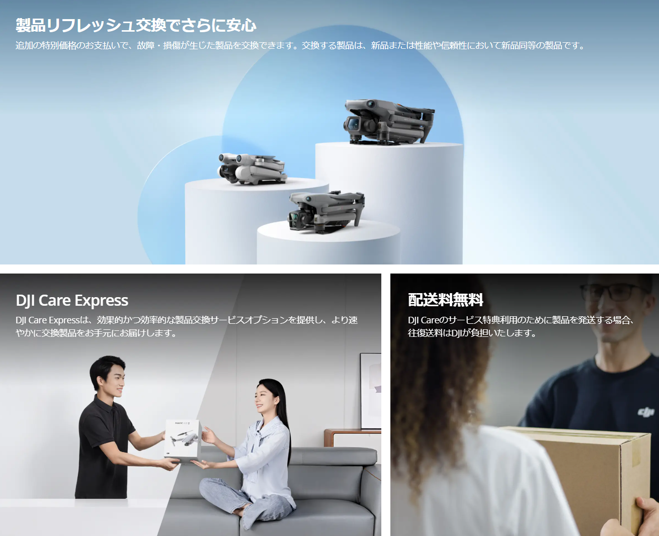 1.初回購入時の条件: 製品は新品で、アクティベーションされていないか、アクティベーションしてから96時間以内であること。2.サービス更新時の条件: お持ちのデバイス用にDJI Care Refreshを以前購入していた場合、現在のサービス有効期限満了後15日以内にDJI Care Refresh(1年版)を購入して、サービス期間を延長できます。