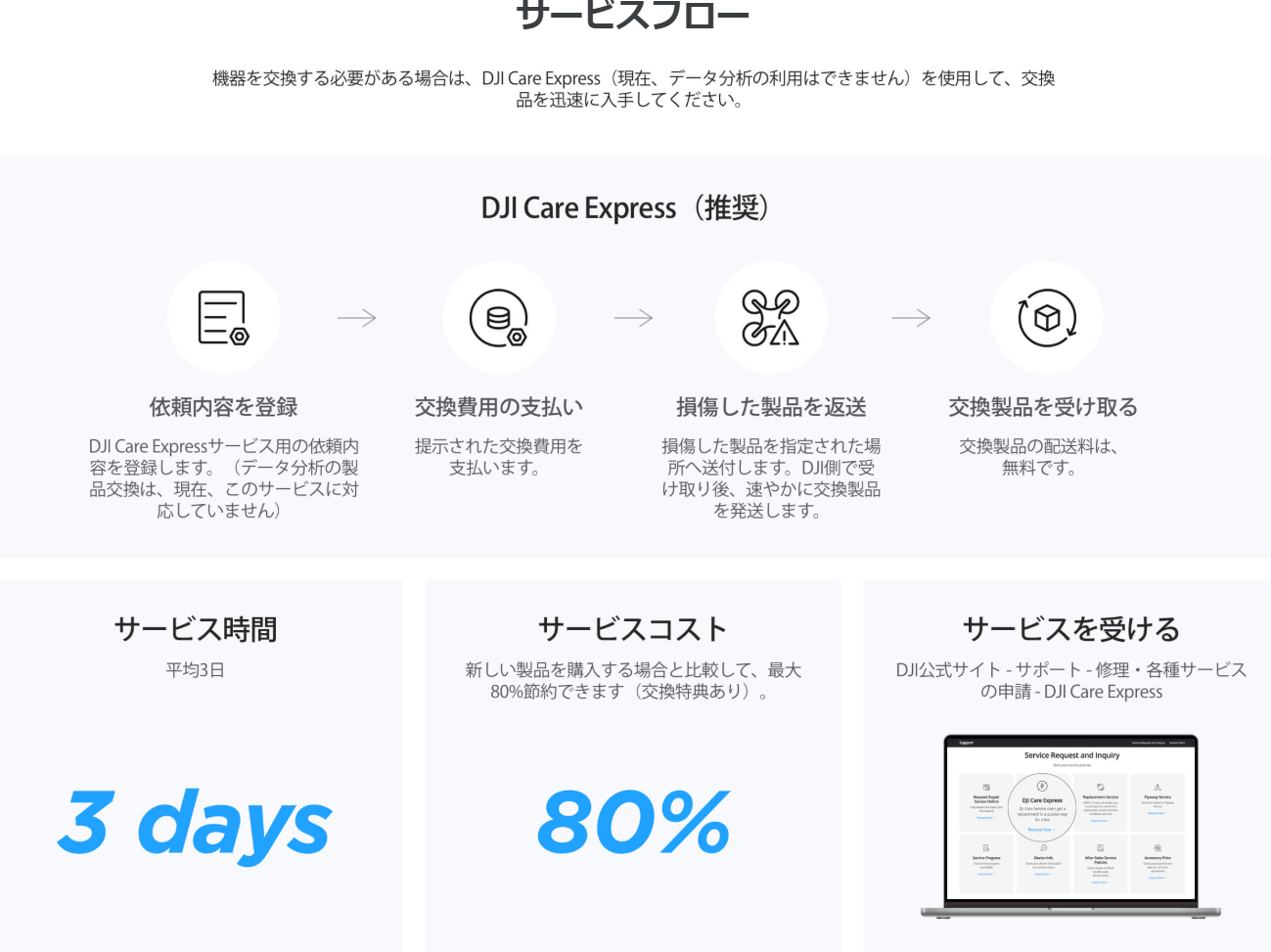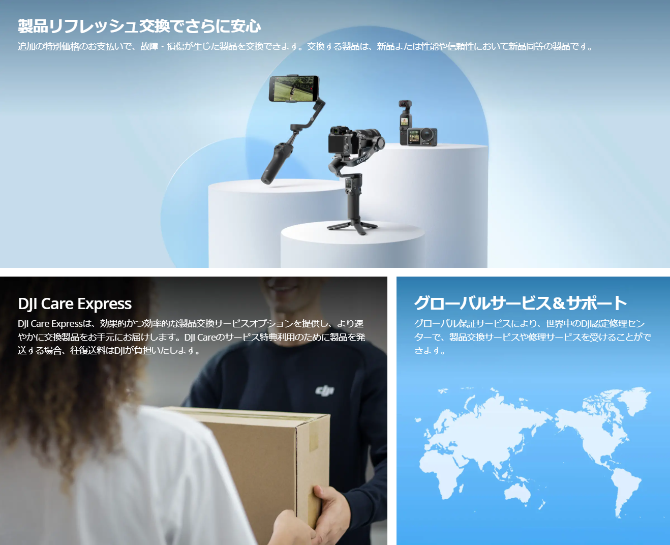お持ちのデバイス用にDJI Care Refreshを以前購入していた場合、現在のサービス有効期限満了後15日以内にDJI Care Refresh(1年版)を購入して、サービス期間を延長できます。